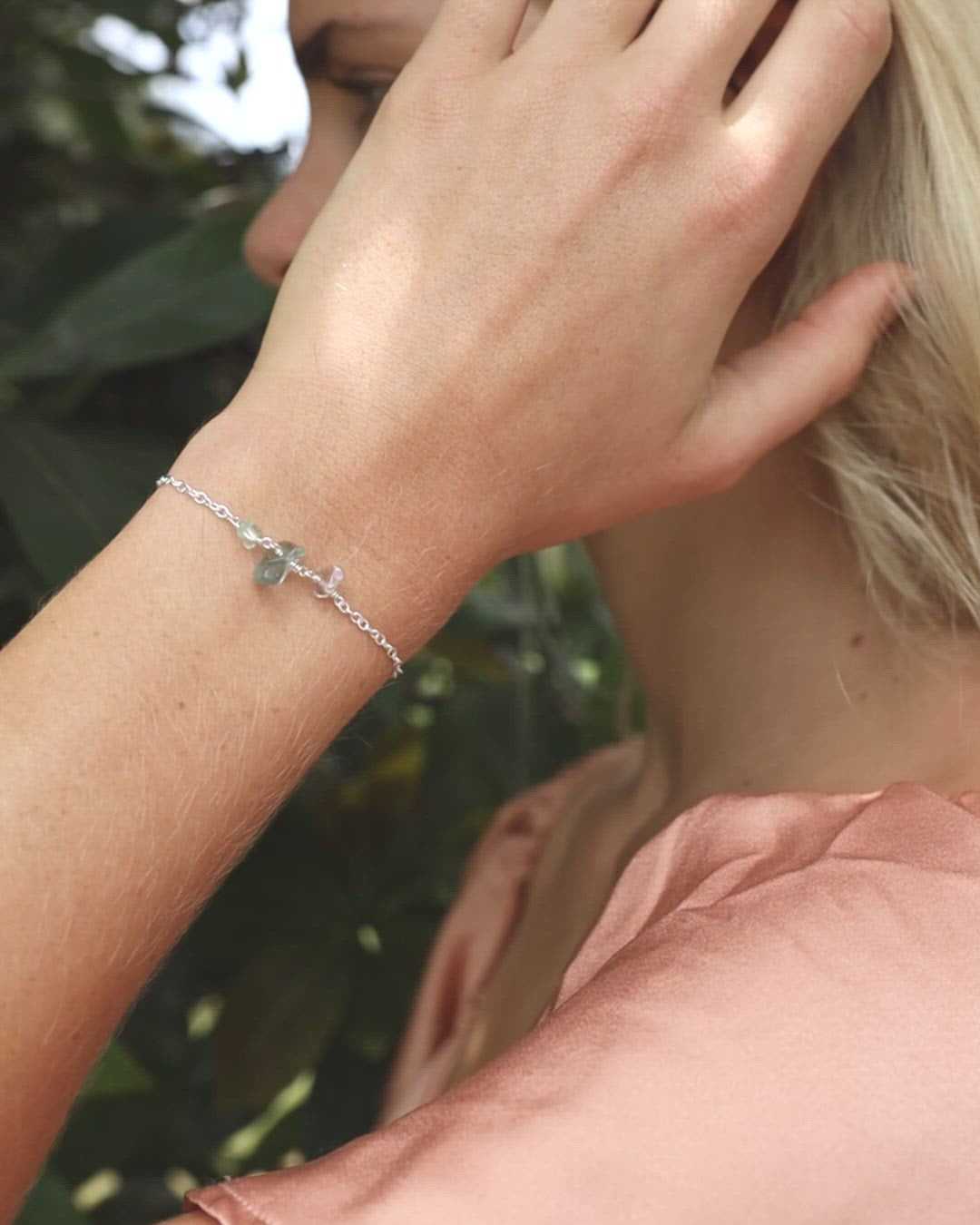 Fluorite Beaded Chain Bracelet - Fluorite Beaded Chain Bracelet - Sterling Silver - Luna Tide Handmade Crystal Jewellery