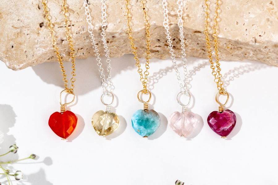 Black Onyx Crystal Heart Pendant Necklace