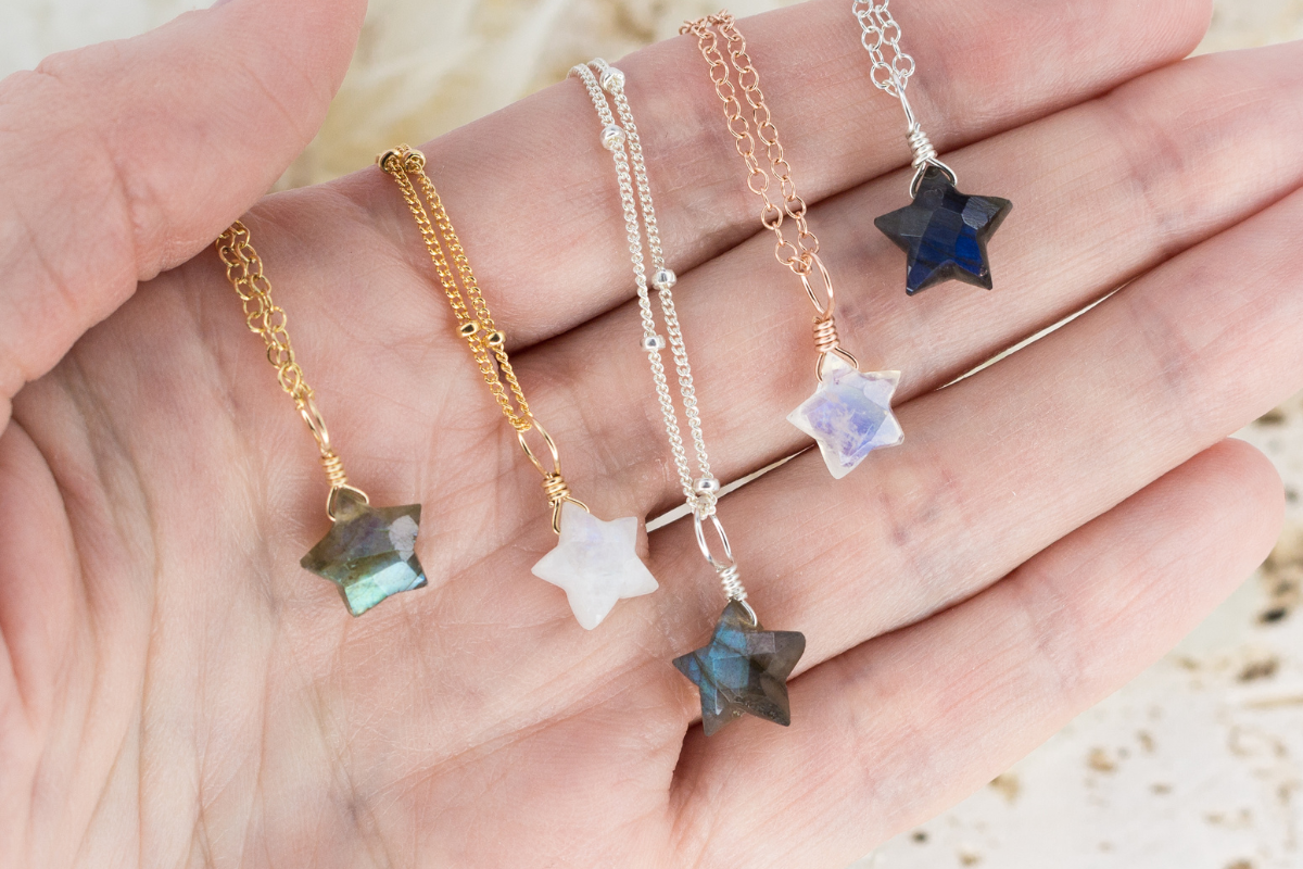 Little Rainbow Moonstone Star Pendant Necklace - Little Rainbow Moonstone Star Pendant Necklace - Sterling Silver / Cable - Luna Tide Handmade Crystal Jewellery