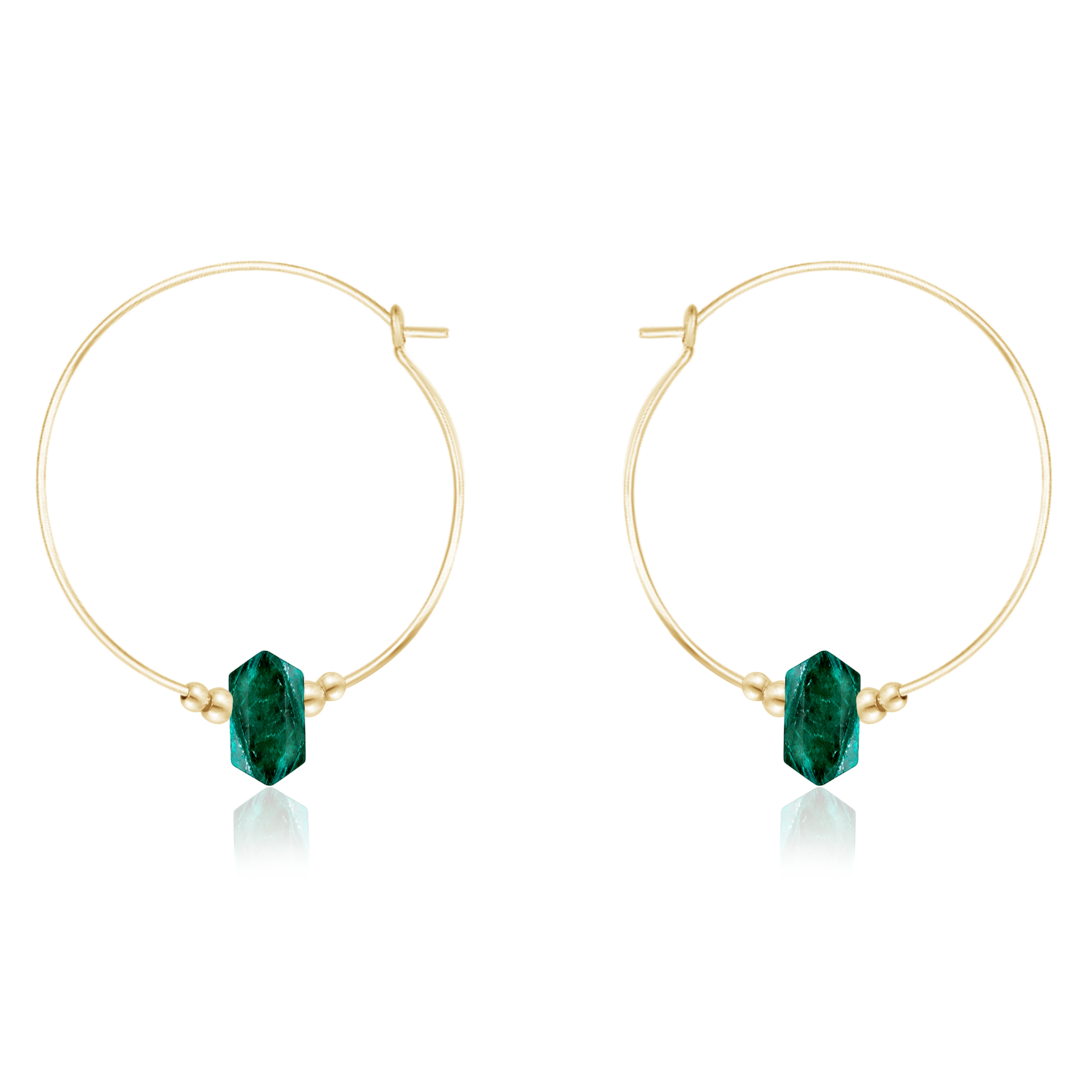 Large Hoop Emerald Double Terminated Crystal Point Earrings