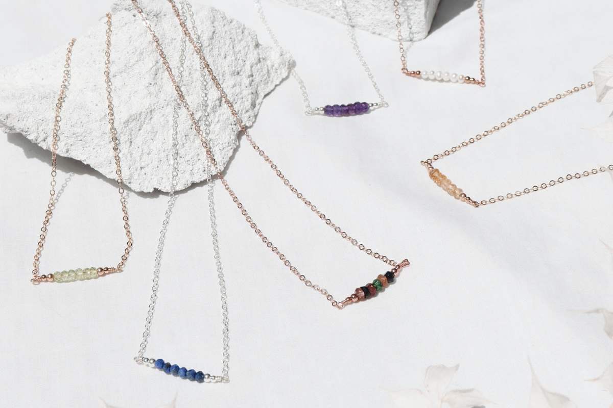 Make every day special in our blue aquamarine tiny bead bar necklace. This necklace is a dainty, feminine design that looks lovely worn either alone or layered with other dainty necklaces. The semi-precious gemstone beads used in this necklace are made from natural, genuine gemstones that have been faceted cut so they sparkle in the light, making it the ideal necklace for evening wear, weddings and special occasions.