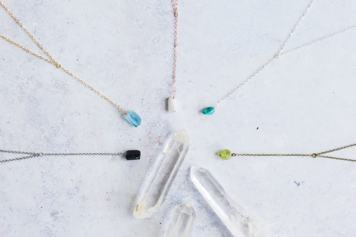 This tiny raw peridot crystal lariat necklace is an elegant way to wear and connect with your favourite crystal.