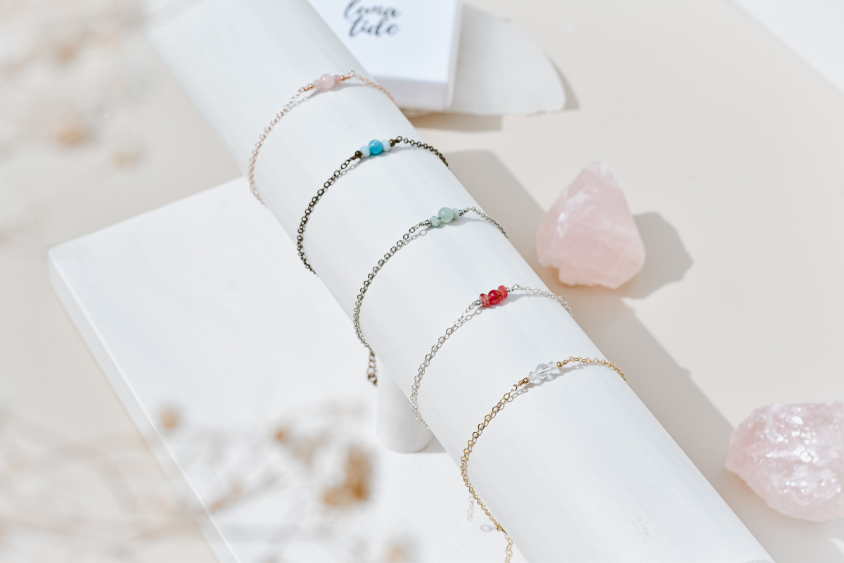 The three small but powerful crystals used in this bracelet are subtle but mighty, connecting you with their metaphysical energies though the lightest touch.