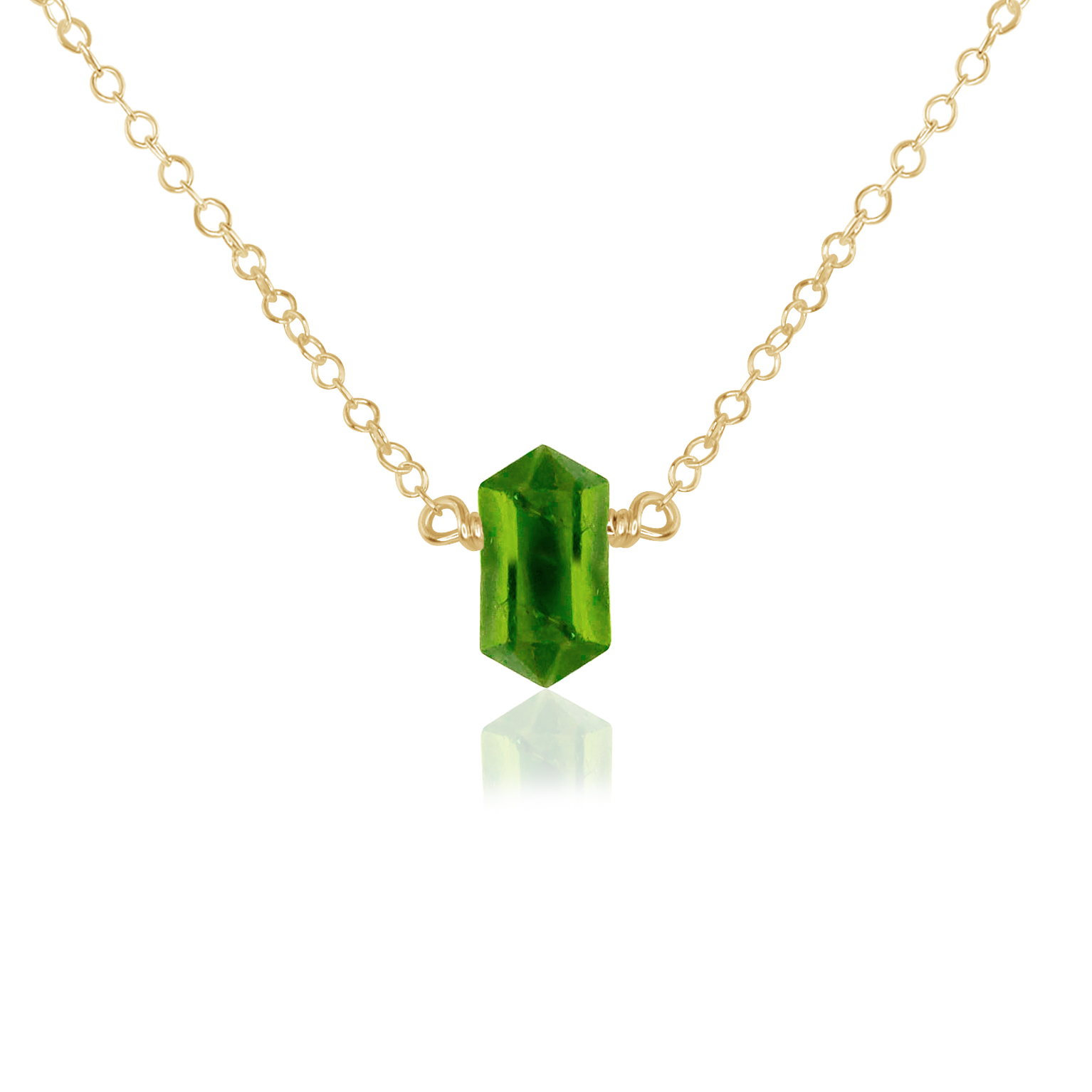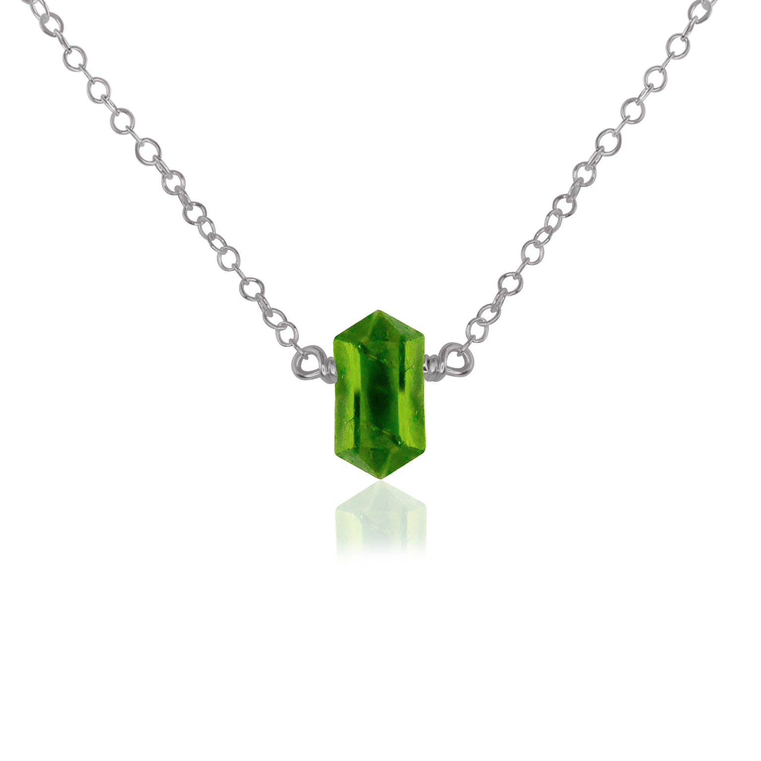 The Double Terminated Peridot Mini Crystal Point Necklace glows with fresh green light, like new leaves kissed by the morning sun. Peridot is the stone of joy, renewal, and abundance, uplifting the heart while clearing away old energy so you can embrace growth and positivity. The petite double terminated crystal point allows energy to flow both inward and outward, symbolising release, renewal, and harmony. Wearing this necklace surrounds you with optimism and vibrant energy every day.