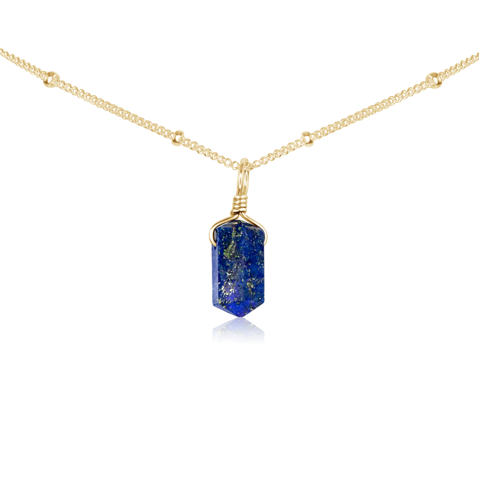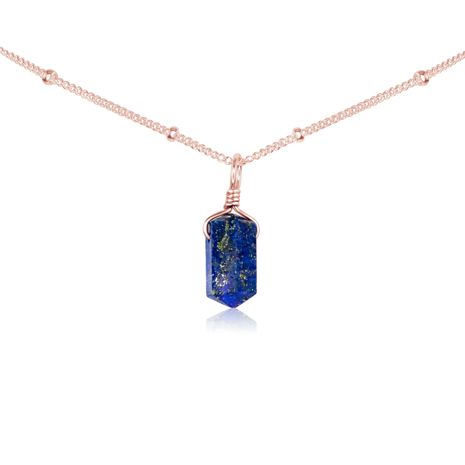 The Lapis Lazuli Mini Double Terminated Crystal Point Pendant Choker Necklace glimmers with celestial blue and delicate golden flecks, like a piece of night sky captured in crystal form. Lapis Lazuli is the stone of wisdom, truth, and inner vision, encouraging clarity of thought and confidence in self-expression. The petite double terminated point channels energy in both directions, balancing your inner world with the way you share your voice, bringing harmony, insight, and courage into your daily journey.