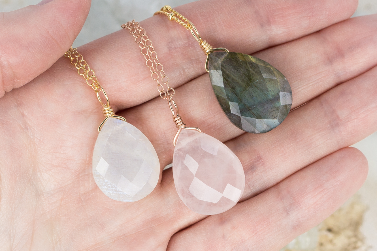 Large Labradorite Faceted Teardrop Crystal Pendant Necklace