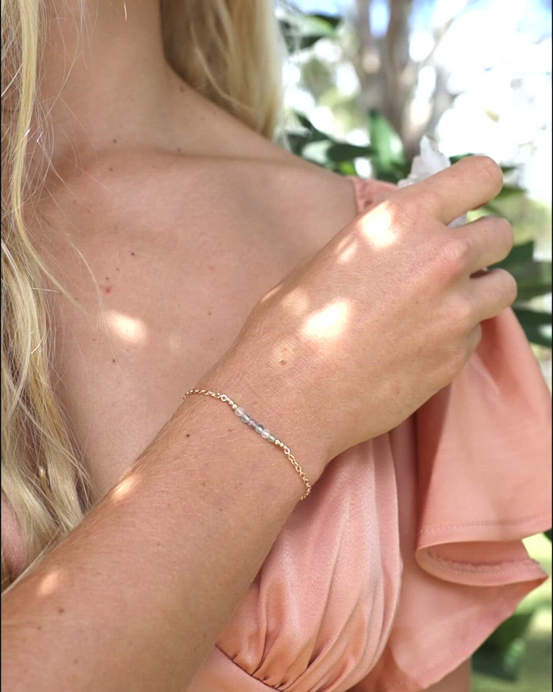 Sparkling Rainbow Fluorite Gemstone Faceted Bead Bar Bracelet - Sparkling Rainbow Fluorite Gemstone Faceted Bead Bar Bracelet - 14k Gold Fill - Luna Tide Handmade Crystal Jewellery